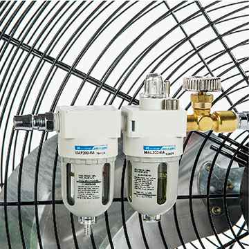 使用空气压缩机所制造的压缩机空气驱动马达,带动风扇运转。